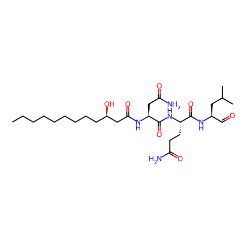| InChI | InChI=1S/C27H49N5O7/c1-4-5-6-7-8-9-10-11-20(34)15-25(37)31-22(16-24(29)36)27(39)32-21(12-13-23(28)35)26(38)30-19(17-33)14-18(2)3/h17-22,34H,4-16H2,1-3H3,(H2,28,35)(H2,29,36)(H,30,38)(H,31,37)(H,32,39)/t19-,20+,21-,22-/m0/s1 |