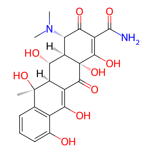 | InChI | InChI=1S/C22H24N2O9/c1-21(32)7-5-4-6-8(25)9(7)15(26)10-12(21)17(28)13-14(24(2)3)16(27)11(20(23)31)19(30)22(13,33)18(10)29/h4-6,12-14,17,25-26,28,30,32-33H,1-3H3,(H2,23,31)/t12-,13-,14+,17+,21-,22+/m1/s1 |