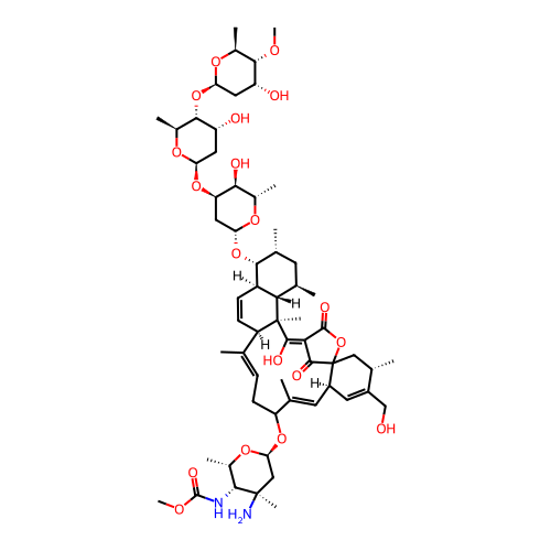 | SMILES | C[C@@H]1C[C@H]([C@H]([C@H]2[C@H]1[C@@]3([C@H](C=C2)C(=CCC(C(=C[C@@H]4C=C([C@H](CC45C(=O)C(=C3O)C(=O)O5)C)CO)C)O[C@H]6C[C@@]([C@@H]([C@@H](O6)C)NC(=O)OC)(C)N)C)C)O[C@@H]7C[C@H]([C@H]([C@@H](O7)C)O)O[C@@H]8C[C@H]([C@H]([C@@H](O8)C)O[C@@H]9C[C@H]([C@H]([C@@H](O9)C)OC)O)O)C |