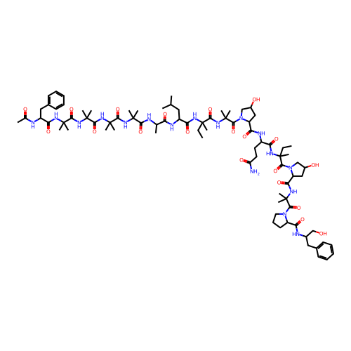 | SMILES | CCC(C)(C(=O)NC(C)(C)C(=O)N1CC(CC1C(=O)NC(CCC(=O)N)C(=O)NC(C)(CC)C(=O)N2CC(CC2C(=O)NC(C)(C)C(=O)N3CCCC3C(=O)NC(CC4=CC=CC=C4)CO)O)O)NC(=O)C(CC(C)C)NC(=O)C(C)NC(=O)C(C)(C)NC(=O)C(C)(C)NC(=O)C(C)(C)NC(=O)C(C)(C)NC(=O)C(CC5=CC=CC=C5)NC(=O)C |