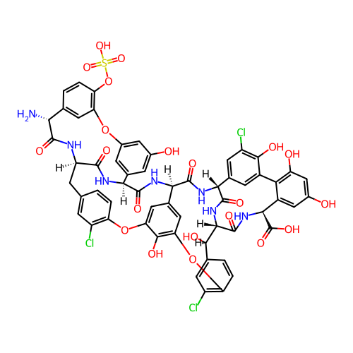 | SMILES | C1[C@@H]2C(=O)N[C@@H](C3=CC(=CC(=C3)O)OC4=C(C=CC(=C4)[C@H](C(=O)N2)N)OS(=O)(=O)O)C(=O)N[C@@H]5C6=CC(=C(C(=C6)OC7=C(C=C(C=C7)[C@H]([C@H]8C(=O)N[C@@H](C9=CC(=CC(=C9C2=CC(=CC(=C2O)Cl)[C@H](C(=O)N8)NC5=O)O)O)C(=O)O)O)Cl)O)OC2=C(C=C1C=C2)Cl |