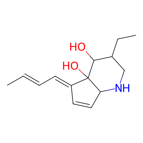 | InChI | InChI=1S/C14H21NO2/c1-3-5-6-11-7-8-12-14(11,17)13(16)10(4-2)9-15-12/h3,5-8,10,12-13,15-17H,4,9H2,1-2H3/b5-3+,11-6+ |