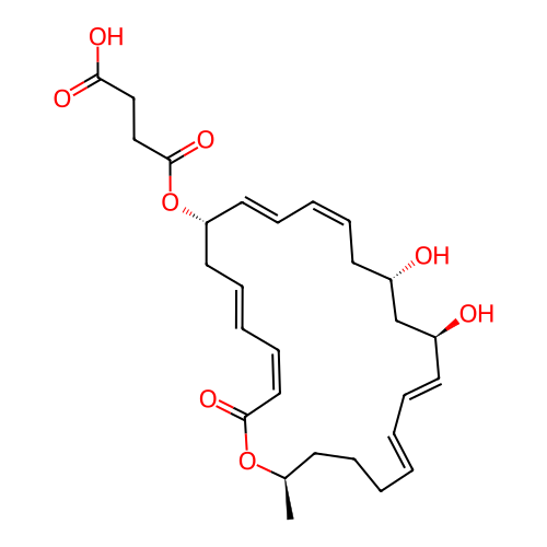 | SMILES | C[C@@H]1CCC/C=C/C=C/[C@@H](C[C@H](C/C=C\C=C\[C@H](C/C=C/C=C\C(=O)O1)OC(=O)CCC(=O)O)O)O |