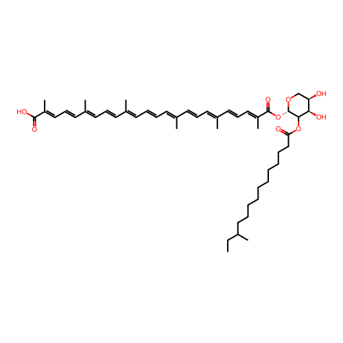| SMILES | CCC(C)CCCCCCCCCCC(=O)OC1[C@@H]([C@@H](CO[C@H]1OC(=O)/C(=C/C=C/C(=C/C=C/C(=C/C=C/C=C(\C)/C=C/C=C(\C)/C=C/C=C(\C)/C(=O)O)/C)/C)/C)O)O |