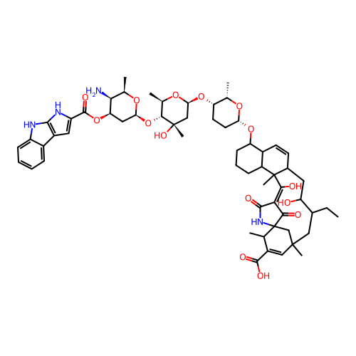 | SMILES | CCC1CC2(CC3(C(C(=C2)C(=O)O)C)C(=O)C(=C(C4(C5CCCC(C5C=CC4CC1O)O[C@@H]6CC[C@@H]([C@@H](O6)C)O[C@H]7C[C@]([C@@H]([C@H](O7)C)O[C@H]8C[C@H]([C@H]([C@H](O8)C)N)OC(=O)C9=CC1=C(N9)NC2=CC=CC=C21)(C)O)C)O)C(=O)N3)C |