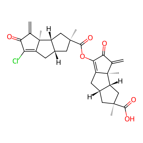 | SMILES | C=C1C(=O)C(OC(=O)[C@@]2(C)C[C@@H]3CC4=C(Cl)C(=O)C(=C)[C@@]4(C)[C@@H]3C2)=C2C[C@H]3C[C@](C)(C(=O)O)C[C@H]3[C@]12C |