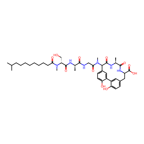 | SMILES | C[C@H]1C(=O)NC(CC2=CC(=C(C=C2)O)C3=C(C=CC(=C3)C(C(=O)N1)N(C)C(=O)CNC(=O)[C@@H](C)NC(=O)[C@@H](CO)N(C)C(=O)CCCCCCCCC(C)C)O)C(=O)O |