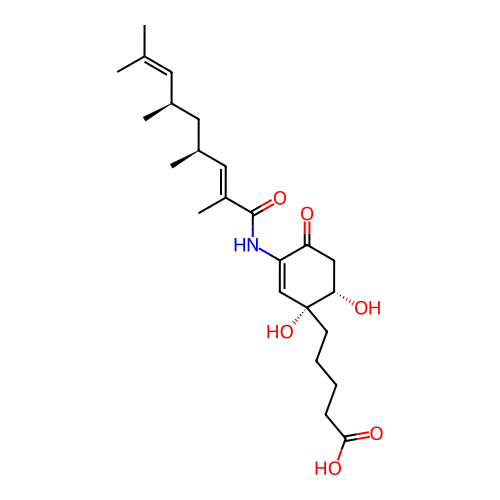 | InChI | InChI=1S/C24H37NO6/c1-15(2)10-16(3)11-17(4)12-18(5)23(30)25-19-14-24(31,21(27)13-20(19)26)9-7-6-8-22(28)29/h10,12,14,16-17,21,27,31H,6-9,11,13H2,1-5H3,(H,25,30)(H,28,29)/b18-12+/t16-,17-,21-,24+/m0/s1 |