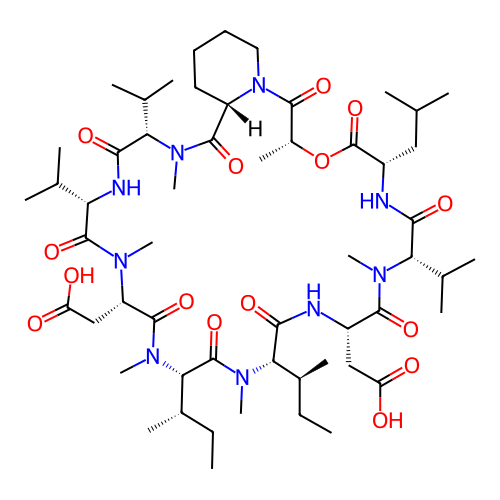 | SMILES | CC[C@H](C)[C@H]1C(=O)N[C@H](C(=O)N([C@H](C(=O)N[C@H](C(=O)O[C@@H](C(=O)N2CCCC[C@H]2C(=O)N([C@H](C(=O)N[C@H](C(=O)N([C@H](C(=O)N([C@H](C(=O)N1C)[C@@H](C)CC)C)CC(=O)O)C)C(C)C)C(C)C)C)C)CC(C)C)C(C)C)C)CC(=O)O |