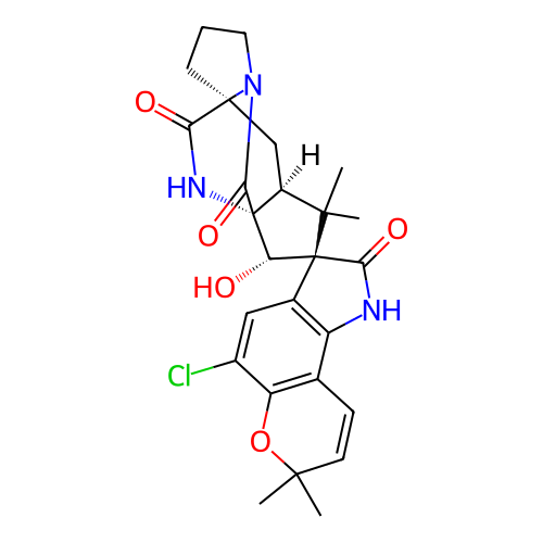| SMILES | CC1(C=CC2=C3C(=CC(=C2O1)Cl)[C@]4([C@@H]([C@]56[C@H](C4(C)C)C[C@@]7(CCCN7C5=O)C(=O)N6)O)C(=O)N3)C |
