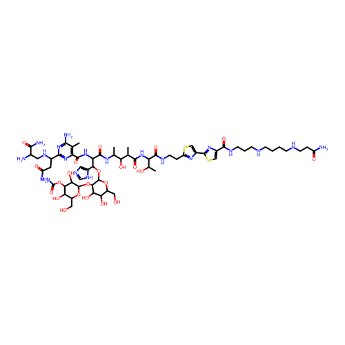 | SMILES | CC1=C(N=C(N=C1N)C(CC(=O)N)NCC(C(=O)N)N)C(=O)NC(C(C2=CN=CN2)OC3C(C(C(C(O3)CO)O)O)OC4C(C(C(C(O4)CO)O)OC(=O)N)O)C(=O)NC(C)C(C(C)C(=O)NC(C(C)O)C(=O)NCCC5=NC(=CS5)C6=NC(=CS6)C(=O)NCCCNCCCCNCCC(=O)N)O |