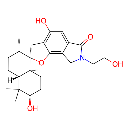 | InChI | InChI=1S/C25H35NO5/c1-14-5-6-19-23(2,3)20(29)7-8-24(19,4)25(14)12-16-18(28)11-15-17(21(16)31-25)13-26(9-10-27)22(15)30/h11,14,19-20,27-29H,5-10,12-13H2,1-4H3/t14-,19-,20+,24-,25+/m0/s1 |