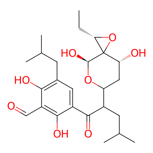 | SMILES | CC[C@H]1C2(O1)[C@@H](CC(O[C@H]2O)C(CC(C)C)C(=O)C3=CC(=C(C(=C3O)C=O)O)CC(C)C)O |