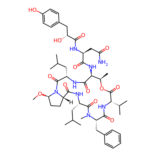 | SMILES | C[C@@H]1[C@@H](C(=O)N[C@H](C(=O)N2[C@@H](CC[C@H]2OC)C(=O)N[C@H](C(=O)N([C@H](C(=O)N[C@H](C(=O)O1)C(C)C)CC3=CC=CC=C3)C)CC(C)C)CC(C)C)NC(=O)[C@H](CC(=O)N)NC(=O)[C@@H](CC4=CC=C(C=C4)O)O |