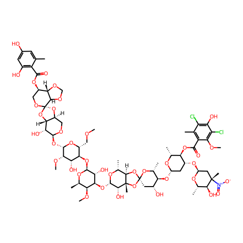 | SMILES | C[C@@H]1[C@H]([C@@H](C[C@@H](O1)O[C@@H]2[C@H](O[C@]3(C[C@H]2O)O[C@@H]4[C@H](O[C@H]([C@H]([C@]4(O3)C)O)O[C@@H]5[C@H]([C@@H](O[C@@H]([C@@H]5OC)C)O[C@@H]6[C@H](O[C@H]([C@H]([C@H]6O)OC)O[C@H]7[C@@H]([C@H]8[C@H](CO7)O[C@@]9(O8)[C@H]1[C@H]([C@@H](CO9)OC(=O)C2=C(C=C(C=C2C)O)O)OCO1)O)COC)O)C)C)O[C@H]1C[C@]([C@H]([C@@H](O1)C)O)(C)[N+](=O)[O-])OC(=O)C1=C(C(=C(C(=C1OC)Cl)O)Cl)C |
