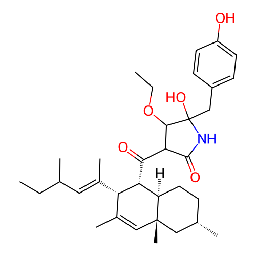 | SMILES | CCC(C)/C=C(\C)/[C@@H]1[C@@H]([C@H]2CC[C@@H](C[C@@]2(C=C1C)C)C)C(=O)C3C(C(NC3=O)(CC4=CC=C(C=C4)O)O)OCC |
