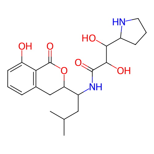 | SMILES | CC(C)CC(C1CC2=C(C(=CC=C2)O)C(=O)O1)NC(=O)C(C(C3CCCN3)O)O |