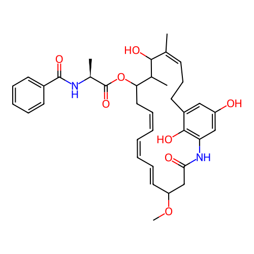 | SMILES | CC1C(C/C=C\C=C/C=CC(CC(=O)NC2=C(C(=CC(=C2)O)CC/C=C(\C1O)/C)O)OC)OC(=O)[C@H](C)NC(=O)C3=CC=CC=C3 |