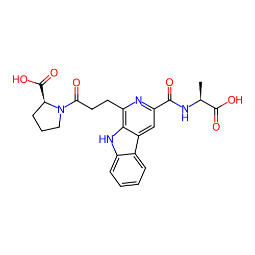| InChI | InChI=1S/C23H24N4O6/c1-12(22(30)31)24-21(29)17-11-14-13-5-2-3-6-15(13)26-20(14)16(25-17)8-9-19(28)27-10-4-7-18(27)23(32)33/h2-3,5-6,11-12,18,26H,4,7-10H2,1H3,(H,24,29)(H,30,31)(H,32,33)/t12-,18-/m0/s1 |