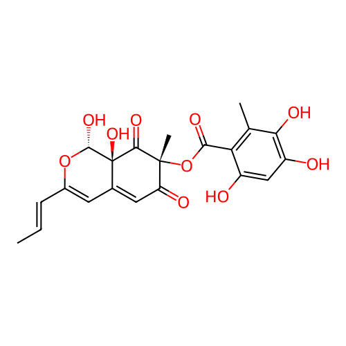 | InChI | InChI=1S/C21H20O10/c1-4-5-11-6-10-7-14(24)20(3,18(27)21(10,29)19(28)30-11)31-17(26)15-9(2)16(25)13(23)8-12(15)22/h4-8,19,22-23,25,28-29H,1-3H3/b5-4+/t19-,20+,21+/m0/s1 |