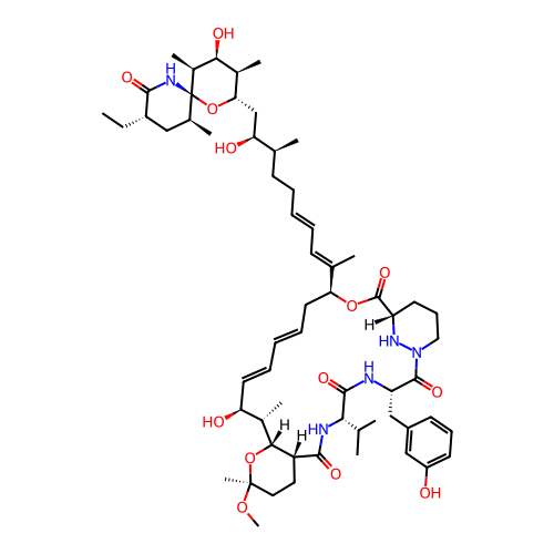 | SMILES | CC[C@H]1C[C@@H]([C@@]2([C@H]([C@H]([C@H]([C@@H](O2)C[C@@H]([C@@H](C)CC/C=C/C=C(\C)/[C@@H]3C/C=C/C=C/[C@@H]([C@@H]([C@@H]4[C@@H](CC[C@@](O4)(C)OC)C(=O)N[C@H](C(=O)N[C@H](C(=O)N5CCC[C@H](N5)C(=O)O3)CC6=CC(=CC=C6)O)C(C)C)C)O)O)C)O)C)NC1=O)C |