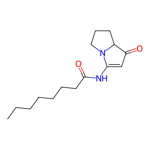 | SMILES | CCCCCCCC(=O)NC1=CC(=O)C2N1CCC2 |