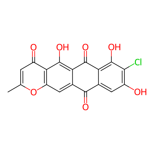 | SMILES | CC1=CC(=O)C2=C(O1)C=C3C(=C2O)C(=O)C4=C(C(=C(C=C4C3=O)O)Cl)O |