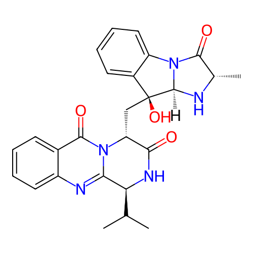 | SMILES | C[C@H]1C(=O)N2[C@@H](N1)[C@@](C3=CC=CC=C32)(C[C@@H]4C(=O)N[C@H](C5=NC6=CC=CC=C6C(=O)N45)C(C)C)O |