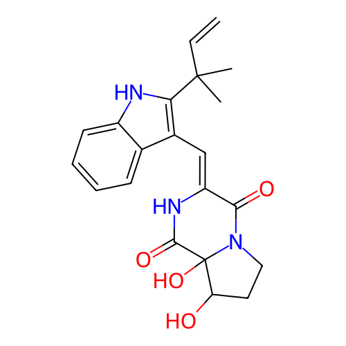 | SMILES | CC(C)(C=C)C1=C(C2=CC=CC=C2N1)/C=C\3/C(=O)N4CCC(C4(C(=O)N3)O)O |