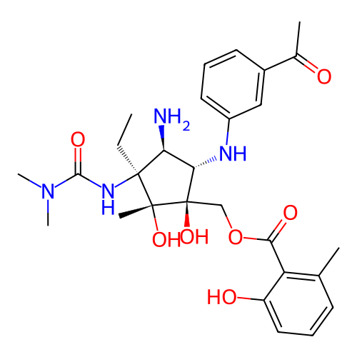 | InChI | InChI=1S/C28H38N4O7/c1-7-27(31-25(36)32(5)6)22(29)23(30-19-12-9-11-18(14-19)17(3)33)28(38,26(27,4)37)15-39-24(35)21-16(2)10-8-13-20(21)34/h8-14,22-23,30,34,37-38H,7,15,29H2,1-6H3,(H,31,36)/t22-,23-,26+,27-,28+/m0/s1 |