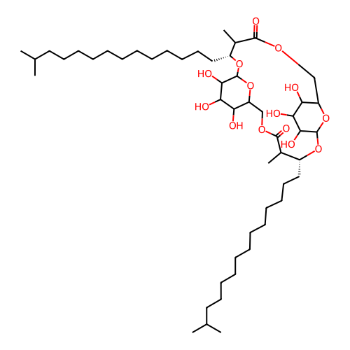 | SMILES | CC(C)CCCCCCCCCCCC[C@H]1OC2OC(COC(=O)C(C)[C@@H](CCCCCCCCCCCCC(C)C)OC3OC(COC(=O)C1C)C(O)C(O)C3O)C(O)C(O)C2O |
