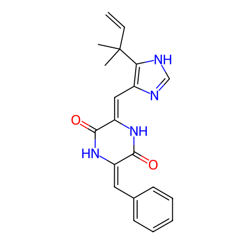 | SMILES | CC(C)(C=C)C1=C(N=CN1)/C=C\2/C(=O)N/C(=C/C3=CC=CC=C3)/C(=O)N2 |