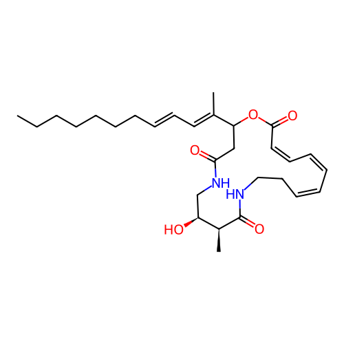 | InChI | InChI=1S/C29H44N2O5/c1-4-5-6-7-8-9-12-15-18-23(2)26-21-27(33)31-22-25(32)24(3)29(35)30-20-17-14-11-10-13-16-19-28(34)36-26/h10-16,18-19,24-26,32H,4-9,17,20-22H2,1-3H3,(H,30,35)(H,31,33)/b13-10-,14-11-,15-12+,19-16-,23-18+/t24-,25-,26?/m0/s1 |