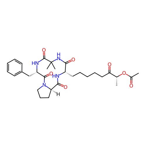 | SMILES | C[C@H](C(=O)CCCCC[C@H]1C(=O)NC(C(=O)N[C@H](C(=O)N2CCC[C@@H]2C(=O)N1)CC3=CC=CC=C3)(C)C)OC(=O)C |