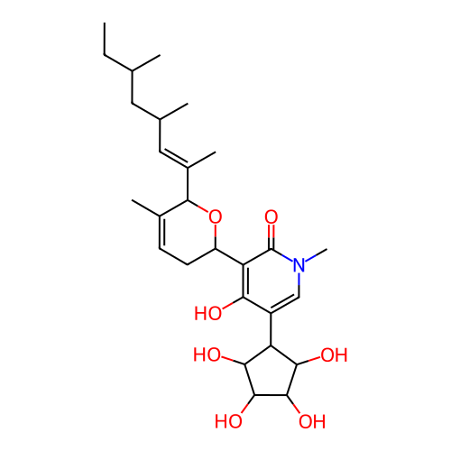 | SMILES | CCC(C)CC(C)/C=C(\C)/C1C(=CCC(O1)C2=C(C(=CN(C2=O)C)C3C(C(C(C3O)O)O)O)O)C |