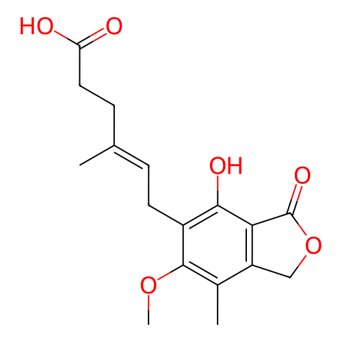 | CCMSLIB00000079956 | Gold | MLS001074701-01!(E)-6-(4-hydroxy-6-methoxy-7-methyl-3-oxo-1H-2-benzofuran-5-yl)-4-methylhex-4-enoic&acid |