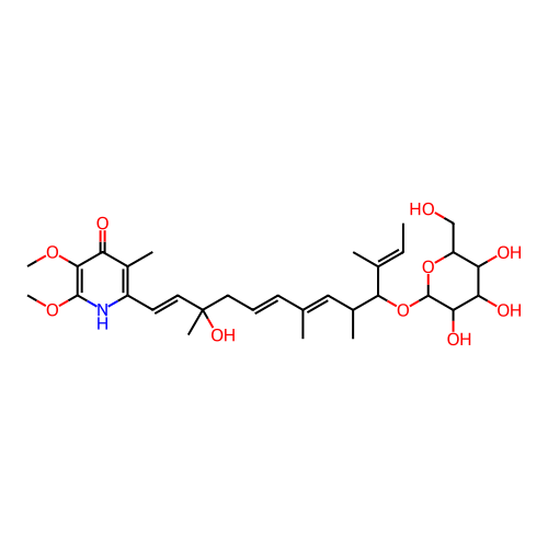 | SMILES | CC=C(C)C(C(C)C=C(C)C=CCC(C)(C=CC1=C(C(=O)C(=C(N1)OC)OC)C)O)OC2C(C(C(C(O2)CO)O)O)O |
