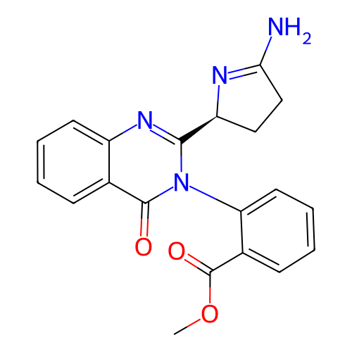 | SMILES | COC(=O)C1=CC=CC=C1N2C(=NC3=CC=CC=C3C2=O)[C@@H]4CCC(=N4)N |