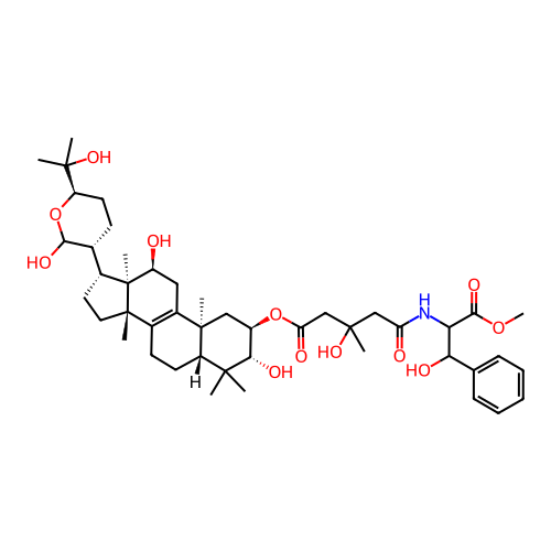 | InChI | InChI=1S/C46H69NO12/c1-41(2)31-17-16-28-29(21-32(48)46(8)27(19-20-45(28,46)7)26-15-18-33(42(3,4)55)59-39(26)53)44(31,6)22-30(38(41)52)58-35(50)24-43(5,56)23-34(49)47-36(40(54)57-9)37(51)25-13-11-10-12-14-25/h10-14,26-27,30-33,36-39,48,51-53,55-56H,15-24H2,1-9H3,(H,47,49)/t26-,27-,30-,31+,32+,33-,36?,37?,38+,39?,43?,44-,45+,46+/m1/s1 |