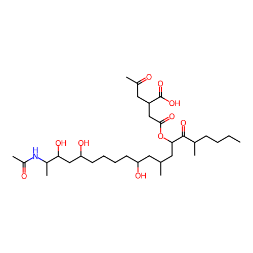 | SMILES | CCCCC(C)C(=O)C(CC(C)CC(CCCCC(CC(C(C)NC(=O)C)O)O)O)OC(=O)CC(CC(=O)C)C(=O)O |