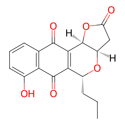 | InChI | InChI=1S/C18H16O6/c1-2-4-10-14-15(18-11(23-10)7-12(20)24-18)16(21)8-5-3-6-9(19)13(8)17(14)22/h3,5-6,10-11,18-19H,2,4,7H2,1H3/t10-,11-,18+/m1/s1 |