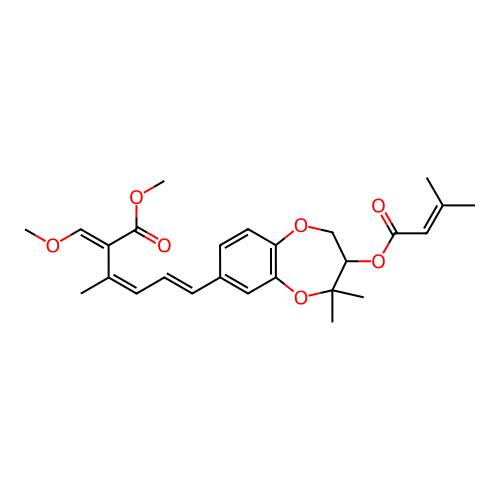 | SMILES | CC(=CC(=O)OC1COC2=C(C=C(C=C2)/C=C/C=C(/C)\C(=C/OC)\C(=O)OC)OC1(C)C)C |