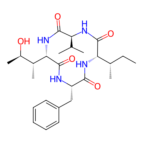 | SMILES | CC[C@H](C)[C@H]1C(=O)N[C@H](C(=O)N[C@H](C(=O)N[C@H](C(=O)N1)CC2=CC=CC=C2)[C@H](C)[C@@H](C)O)C(C)C |