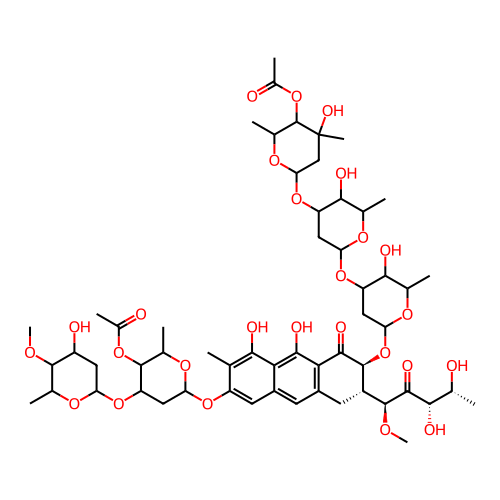 | SMILES | CC1C(C(CC(O1)O[C@H]2[C@@H](CC3=C(C2=O)C(=C4C(=C3)C=C(C(=C4O)C)OC5CC(C(C(O5)C)OC(=O)C)OC6CC(C(C(O6)C)OC)O)O)[C@@H](C(=O)[C@H]([C@@H](C)O)O)OC)OC7CC(C(C(O7)C)O)OC8CC(C(C(O8)C)OC(=O)C)(C)O)O |