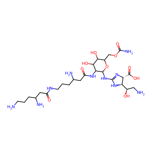 | SMILES | C(CC(CC(=O)NCCCC(CC(=O)NC1C(C(C(OC1NC2=N[C@@H]([C@H](N2)[C@@H](CN)O)C(=O)O)COC(=O)N)O)O)N)N)CN |