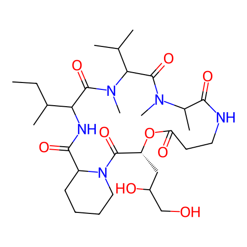 | SMILES | CCC(C)C1NC(=O)C2CCCCN2C(=O)[C@@H](CC(O)CO)OC(=O)CCNC(=O)C(C)N(C)C(=O)C(C(C)C)N(C)C1=O |
