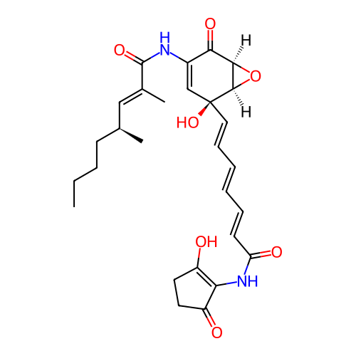 | SMILES | CCCC[C@H](C)/C=C(\C)/C(=O)NC1=C[C@]([C@H]2[C@@H](C1=O)O2)(/C=C/C=C/C=C/C(=O)NC3=C(CCC3=O)O)O |