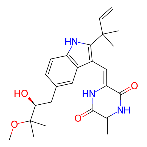 | SMILES | CC(C)(C=C)C1=C(C2=C(N1)C=CC(=C2)C[C@@H](C(C)(C)OC)O)/C=C\3/C(=O)NC(=C)C(=O)N3 |