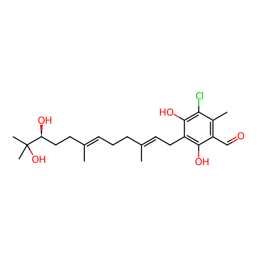 | SMILES | CC1=C(C(=C(C(=C1Cl)O)C/C=C(\C)/CC/C=C(\C)/CC[C@@H](C(C)(C)O)O)O)C=O |
