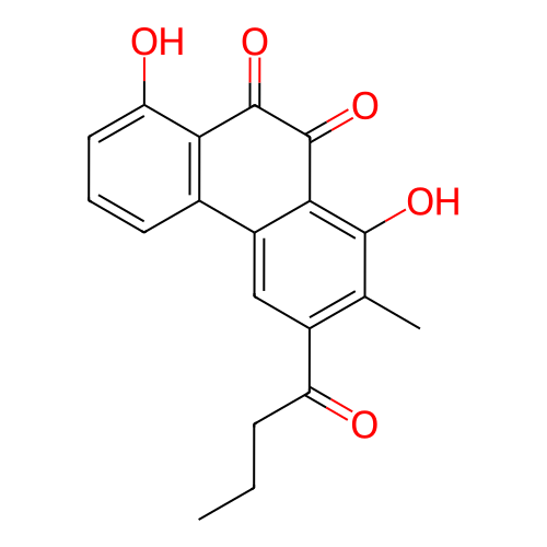 | SMILES | CCCC(=O)C1=C(C(=C2C(=C1)C3=C(C(=CC=C3)O)C(=O)C2=O)O)C |